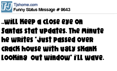 X ..will keep a close eye on Santas stat updates. The minute he writes "just passed over crack house with ugly skank looking out window" i'll wave.