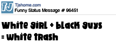 - # 91055 This white girl took me home last night. She wanted me to prove to her what they say about black guys is true....so I stabbed her and took her purse.