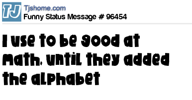 - # 90352 I was good at math, until they decided to start mixing in the alphabet too.