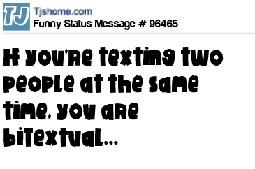 - # 78499 If you're texting two people at the same time, you are biTextual. :)