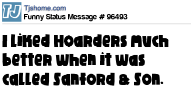 - # 208705 The TV show 'Hoarders' is ok and all but I liked it so much better when it was called 'Sanford and Son'.