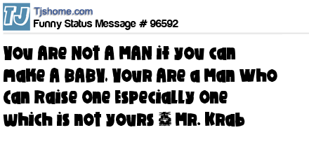 X is You Are Not A MAN if you can make A BABY, Your Are a Man Who Can Raise One Especially One which is not yours ~ Mr. Krab