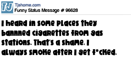X I heard in some places they bannned cigarettes from gas stations. That's a shame, I always smoke after I get f*cked.
