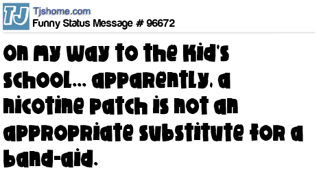 X On my way to the kid's school... apparently, a nicotine patch is not an appropriate substitute for a band-aid.