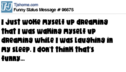 X is I just woke myself up dreaming that I was waking myself up dreaming while I was laughing in my sleep. I don't think that's funny...
