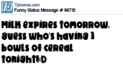 X says milk expires tomorrow, guess who's having 3 bowls of cereal tonight!:D