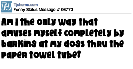 X Am I the only way that amuses myself completely by barking at my dogs thru the paper towel tube?