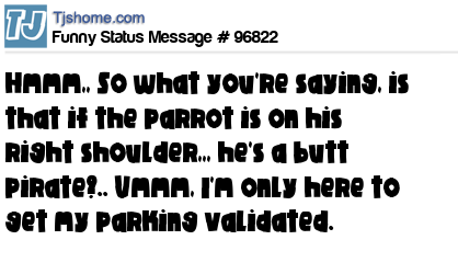 X Hmmm,, So what you're saying, is that if the parrot is on his right shoulder,,, he's a butt pirate?.. Ummm, I'm only here to get my parking validated.