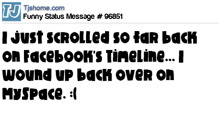 - # 127201 I just scrolled sooo far back on Facebook's Timeline... I wound up back over on MySpace.