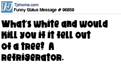 X is What's white and would kill you if it fell out of a tree?  A refrigerator.
