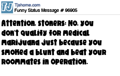 X  Attention, stoners: No, you don't qualify for medical marijuana just because you smoked a blunt and beat your roommates in Operation.