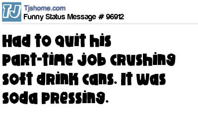 X had to quit his part-time job crushing soft drink cans. It was soda pressing.