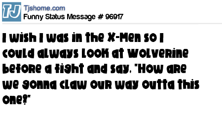 X I wish I was in the X-Men so I could always look at Wolverine before a fight and say, "How are we gonna claw our way outta this one?"