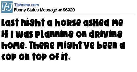 - # 18430 A horse told me not to drive home last night.I think there was a cop on top of it.