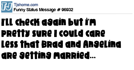 X says I'll check again but i'm pretty sure I could care less that Brad and Angelina are getting married...