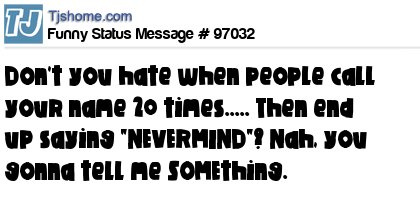 X Don't you hate when people call your name 20 times..... Then end up saying "NEVERMIND"? Nah, you gonna tell me SOMEthing.