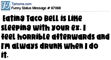 X is Eating Taco Bell is like sleeping with your ex. I feel horrible afterwards and I'm always drunk when I do it.