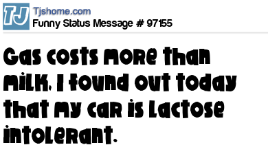 X says gas costs more than milk, I found out today that my car is lactose intolerant.