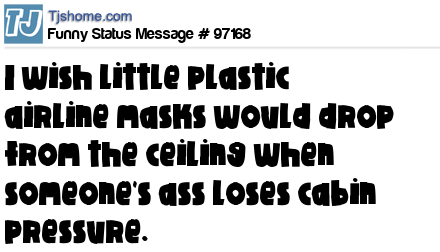 X I wish little plastic airline masks would drop from the ceiling when someone's ass loses cabin pressure.