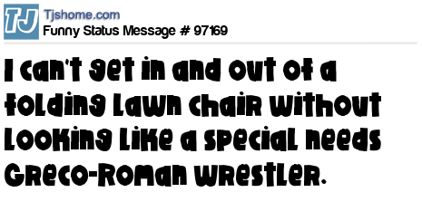X I can't get in and out of a folding lawn chair without looking like a special needs Greco-Roman wrestler.