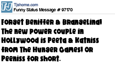 X Forget Beniffer & Brangelina! The new power couple in Hollywood is Peeta & Katniss from The Hunger Games! Or Peeniss for short.