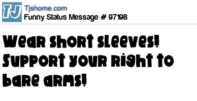 - # 182317 Since the 2nd amendment gives me the right to bear arms. I cut the sleeves off all of my shirts.