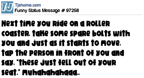 - # 126062 Next time your on a roller coaster take some extra bolts with you then when you're going up that first hill tell the guy in front of you "these just fell out of your chair!!!!"