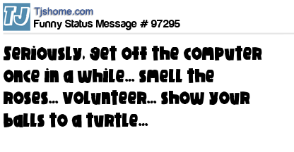 X Seriously, get off the computer once in a while… smell the roses… volunteer… show your balls to a turtle…