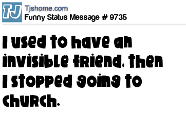 - # 130455 When you are talking to an invisible man in the sky, you are either A) on drugs Or B) at church