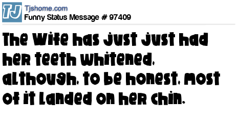 X says The Wife has just just had her teeth whitened, although, to be honest, most of it landed on her chin.