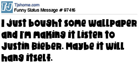 X says I just bought some wallpaper and I'm making it listen to Justin Bieber. Maybe it will hang itself.