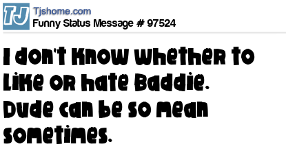 X says I don't know whether to like or hate Baddie. Dude can be so mean sometimes.