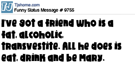 - # 43118 did you hear about the fat alcoholic transvestite.. all he wanted to do was Eat, Drink and be Mary