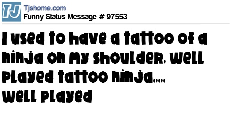 X I used to have a tattoo of a ninja on my shoulder, well played tattoo ninja,,,,, well played