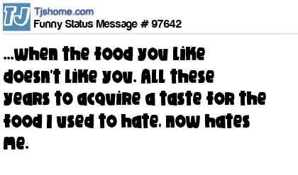 X says ...when the food you like doesn't like you. All these years to acquire a taste for the food I used to hate, now hates me.