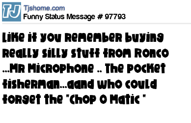 X Like if you remember buying really silly stuff from Ronco ...Mr Microphone .. The pocket fisherman...aand who could forget the "Chop O Matic "