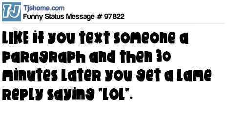 - # 72639 LIKE if you text someone a paragraph and then 30 minutes later you get a damn lame reply saying "LOL".