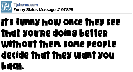 X It's funny how once they see that you're doing better without them, some people decide that they want you back.