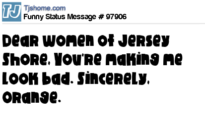 X is Dear women of Jersey Shore, You're making me look bad. Sincerely, Orange.
