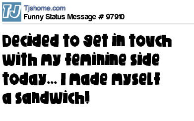 - # 110159 I decided to get in touch with my feminine side today. I made myself a sandwich.