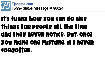 - # 89101 You can do nice things for people all the time & they never notice.But once you make one mistake, its never forgotten.