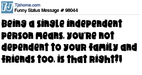 X Being a single independent person means, you're not dependent to your family and friends too, is that right?!
