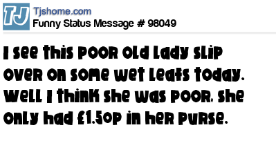 X  I see this poor old lady slip over on some wet leafs today. Well I think she was poor, she only had £1.50p in her purse.