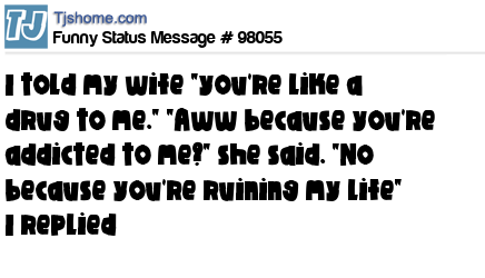 X is I told my wife "you're like a drug to me." "Aww because you're addicted to me?" she said. "No because you're ruining my life" I replied