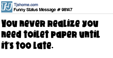 - # 175122 You never truly realize what you have till its gone. Toilet paper, for example.