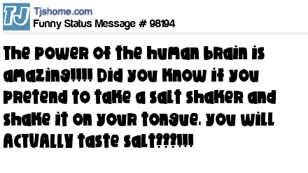 X The power of the human brain is amazing!!!! Did you know if you pretend to take a salt shaker and shake it on your tongue, you will ACTUALLY taste salt???!!!