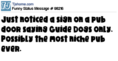 X Just noticed a sign on a pub door saying Guide Dogs Only. Possibly the most niche pub ever.