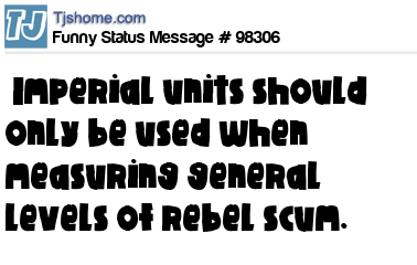 X says Imperial units should only be used when measuring general levels of rebel scum.