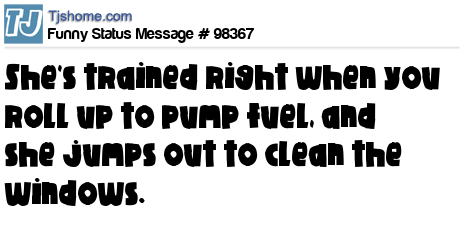 - # 98368 YOu know she's trained right IF when you roll up to the pump.....she jumps out and then pays for the gas