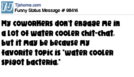X says My coworkers don't engage me in a lot of water cooler chit-chat, but it may be because my favorite topic is "water cooler spigot bacteria."
